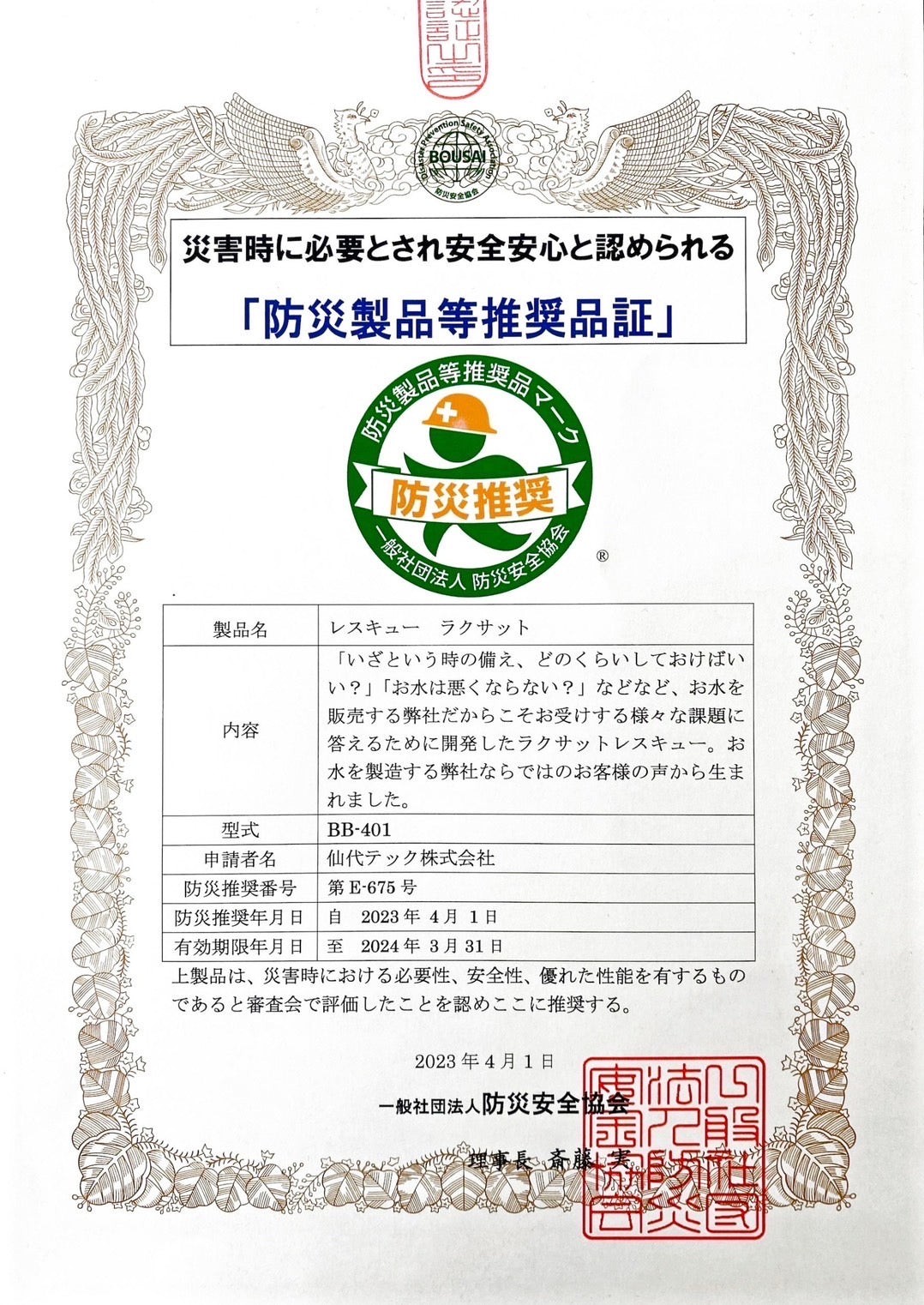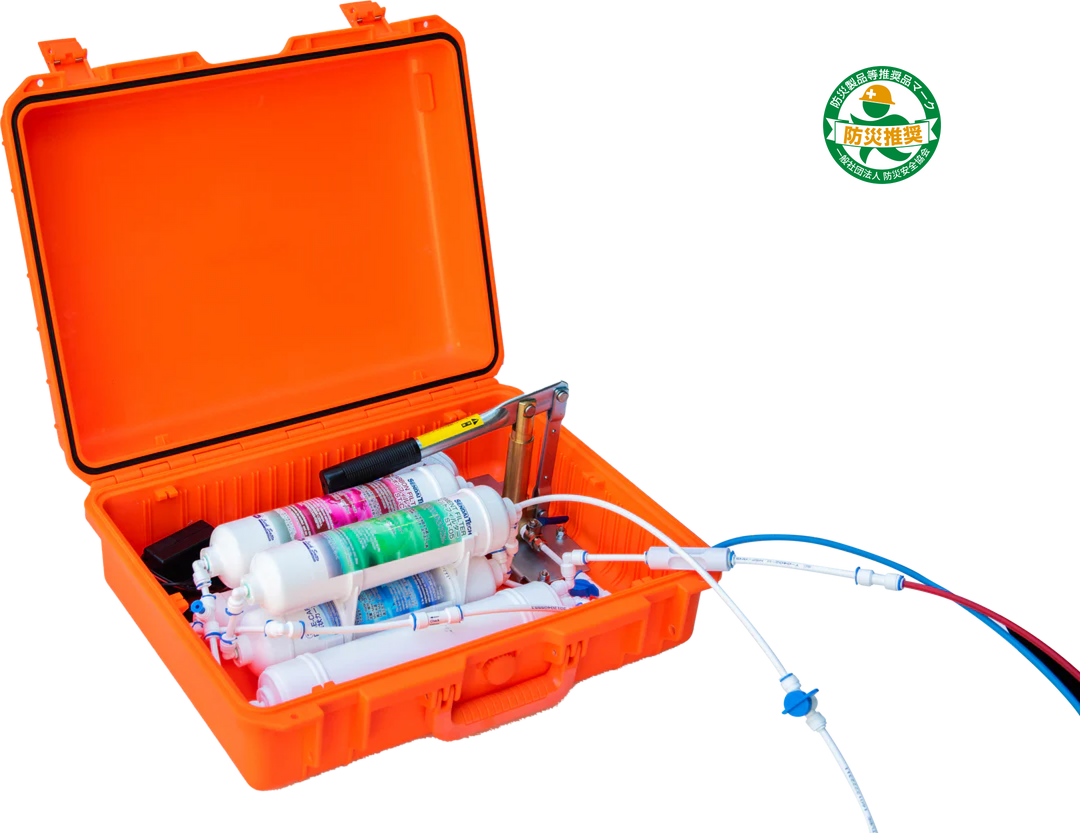 ラクサットレスキューは、アメリカのNASAで開発されたナノテクノロジーを基軸に開発した浄水技術で、RO水(不純物をほぼ100%取り除いたお水)を手動で生成することができる新しい防災アイテムです。