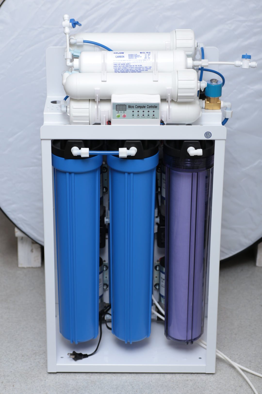 1000万分の1ミリのごく小さな孔が開けられた逆浸透膜フィルターは、水分子以外のトリハロメタンや有害なミネラルなどの非常に小さな物質をも通しません。他浄水システムでは除去不可能な物質をも除去することができます。 -